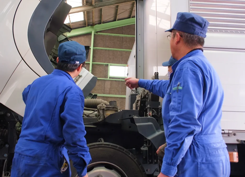 私たちが向き合っているのは、街の仕事を支えるトラックです。車両が大きく、構造も複雑だからこそ、経験はそのまま専門性になります。一人に任せきりにせず、チームで作業しながら、基礎からしっかり学べる。